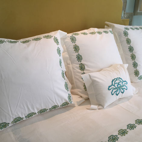 Our bedding collections are crafted in the United States using the finest Egyptian cotton percale and sateen fabrics. Designed for interior designers and discerning homeowners, each piece can be customized with elegant embroidery, refined monograms, and tailored finishes to create a bedroom that feels both personal and timeless.